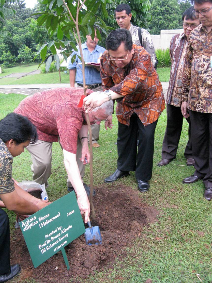 Photo Gallery Return to main Photo Gallery page >> As US Science Envoy Dr. Alberts with young Indonesian scientists in 2010.Bruce and Susilo Bambang Yudhoyono, the President of Indonesia, 2010Bruce Alberts with Future University studentsIn Indonesia with Jason Rao from OSTP, 2010.With students of the Madrasa Indan Cendekia, Serpong Indonesia, 2011.With Jason Rao and US Ambassador to Indonesia, Cameron Hume, 2010.On a panel in Khartoum, Sudan, 2013.Indonesian welcoming ceremony, 2010.Indonesian tree planting, 2010.In a Sudanese newspaper, 2013.In Indonesia with Jason Rao and Head of Indonesian Science Laboratories, 2010.First Indonesian-American Frontiers of Science Symposium, Bogor, Indonesia, 2011.With California Council of Science and Technology Fellows at Sacramento in 2009.